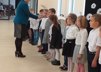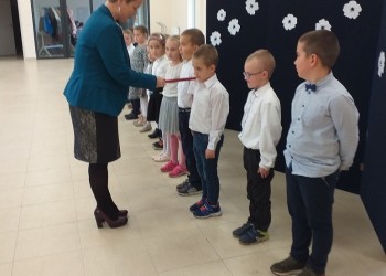 Odbyła się ona gościnnie w filii bibliotecznej Miejsko–Gminnej Biblioteki. Pierwszaki zaprezentowały program artystyczny przygotowany pod kierunkiem wychowawczyni p. Justyny Gallas. Swoim występem 19 uczniów udowodniło, że są gotowi do sumiennej nauki w szkole. W podniosłej atmosferze przed pocztem sztandarowym, rodzicami i panią dyrektor pierwszoklasiści ślubowali być dobrymi uczniami i Polakami, że będą się uczyć się tego, co mądre i piękne, a przede wszystkim będą od siebie wymagać, nawet gdyby inni od nich nie wymagali. Po złożonym ślubowaniu nastąpił uroczysty akt pasowania, którego dokonała p. dyrektor Janina Szlufarska – Kłosek. W ten sposób pierwszoklasiści zostali oficjalnie przyjęci do grona społeczności szkolnej. Ślubowanie złożyli również rodzice, przyrzekając, że będą pamiętać, że ich dziecko jest wspaniałym darem, dlatego będą słuchać uważnie, co do nich mówi, będą je kochać i wspierać, a przede wszystkim cenić w nim to, co najlepsze. Na pamiątkę tego wydarzenia uczniowie otrzymali dyplomy, legitymacje szkolne oraz książeczki SKO i upominki od Banku Spółdzielczego.