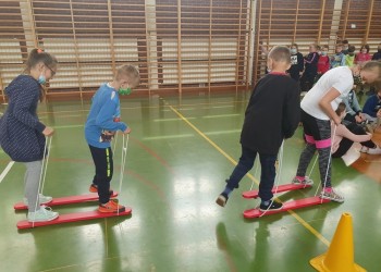 Nie mogło zabraknąć wspinaczki po górach, gry w piłkę nożną, jazdy na nartach czy pływania kajakiem. Oczywiście wszystko to działo się w sali gimnastycznej. Starsi uczniowie natomiast sprawdzali swoją wiedzę o patronie podczas gry terenowej. Wykonywanie zadań wymagało nie tylko wiedzy, bystrości, ale również umiejętności sportowych. Podsumowaniem był krótki apel na boisku szkolnym oraz złożenie kwiatów pod tablicą Jana Pawła II, patrona szkoły.