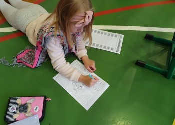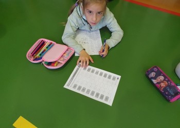 Rozwiązywanie zadań przeplatane było zabawami ruchowymi z wykorzystaniem wiadomości matematycznych. Wszystkie dzieci bardzo zaangażowały się do pracy i co ważniejsze robiły to z wielką ochotą.