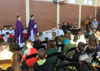 W ostatni dzień rekolekcji przeżywaliśmy w naszej sali gimnastycznej nabożeństwo Drogi Krzyżowej oraz polową Msze świętą. Na zakończenie uczniowie wraz z Panią Dyrektor podziękowali księdzu rekolekcjoniście.