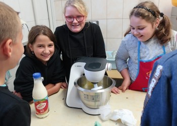 Mali kucharze korzystali ze sprzętu pozyskanego dzięki programowi #Laboratoria Przyszłości - robota planetarnego Bosch i kuchenki elektrycznej BEKO. Uczniowie wykorzystując nowoczesny sprzęt rozwijają swoje pasje kulinarne.