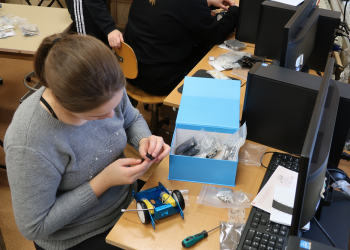 Od września w ramach programu #Laboratoria Przyszłości uczniowie klasy 6 na zajęciach koła zainteresowań „Robotyka” uczą się za pomocą prostych narzędzi wg. instrukcji krok po kroku zbudować mBota - małego edukacyjnego robota. Jest to sprzęt, który szkoła pozyskała dzięki programowi #Laboratoria Przyszłości.