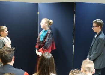 Na ostatnich zajęciach przed feriami uczniowie klasy VI przedstawiali wybrane sceny z komedii Aleksandra Fredry „Zemsta”. Dzięki aparatowi fotograficznemu i statywowi pozyskanemu w ramach programu #Laboratoria Przyszłości