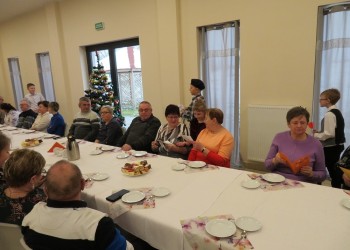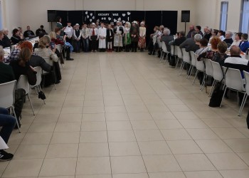 Tak jak zawsze dziadkowie nie zawiedli i bardzo licznie przybyli tym razem do Sali Wiejskiej. Zasiedli przy przygotowanych dla nich stołach i z niecierpliwością czekali na występ swoich wnucząt.