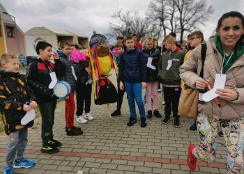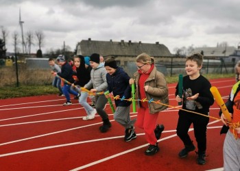Chociaż jeszcze bez promyków słońca, ale radośnie, kolorowo i sportowo powitano wiosnę tego dnia w szkole w Lipinach.