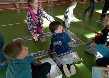 Układały puzzle, uczyły się piosenki o strażaku Największy jednak entuzjazm u przyszłych uczniów wzbudziła praca z robotami. Dzieci musiały poprowadzić robota do miejsca, w których wybuchł pożar. Zaprogramowanie drogi okazało się świetną zabawą. Uczniowie klasy 3 służyli przedszkolakom pomocą i radą. Przedszkolaki były zachwycone, już teraz z pewnością zaczną odliczać dni do pierwszego dzwonka w szkole.