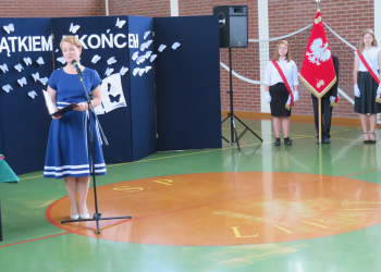 Jako pierwsza głos zabrała dyrektor szkoły – pani Janina Szlufarska-Kłosek, która wszystkim podziękowała za pracowity, ale i ciekawy rok szkolny. Wszystkim życzyła udanego wypoczynku, ciekawych przygód i niesamowitych wspomnień, natomiast absolwentom szkoły – wiary w siebie i swoje możliwości. Następnie głos zabrał przedstawiciel organu prowadzącego – zastępca burmistrza, pan Łukasz Malczewski, który podziękował wszystkim za trudny, ale udany rok współpracy. Na koniec po raz ostatni wystąpili uczniowie 8 klasy, rozpoczynając swój program artystyczny polonezem, co zadało szyku ich prezentacji. Następnie przedstawili krótkie scenki satyryczne z ostatnich lat swojego pobytu w murach tej szkoły.