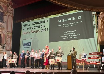 Troje uczniów ze Szkoły Podstawowej w Lipinach w składzie: Julia Olejniczak, Marcel Budny i Franciszek Dobrzykowski wzięło udział w Ogólnopolskim Konkursie Historycznym "Patria Nostra". Zadaniem uczestników było nagranie filmiku o wskazanej dla danej grupy tematyce.