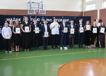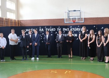 Kolejnym etapem uroczystości było otrzymanie świadectw przez absolwentów, którzy później - w części artystycznej zaprosili nas do wspólnej podroży sentymentalnej. Choć z założenia program miał charakter humorystyczny, wielu widzom zakręciła się łza w oku. Ósmoklasiści śpiewali, tańczyli i recytowali, przenosząc wszystkich w świat ich emocji, wspomnień, ale i planów.