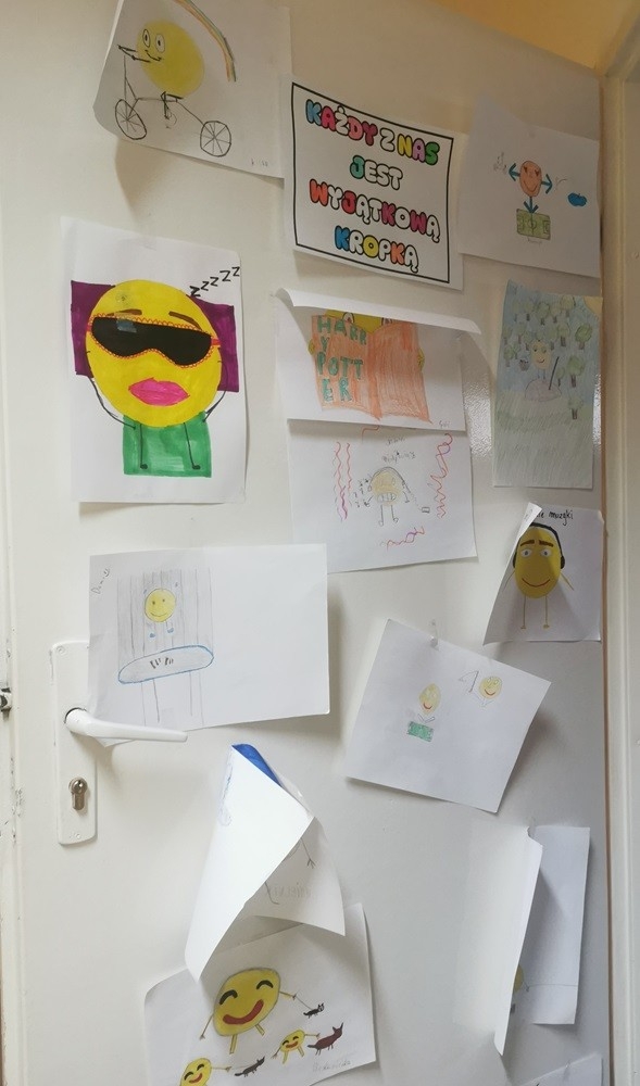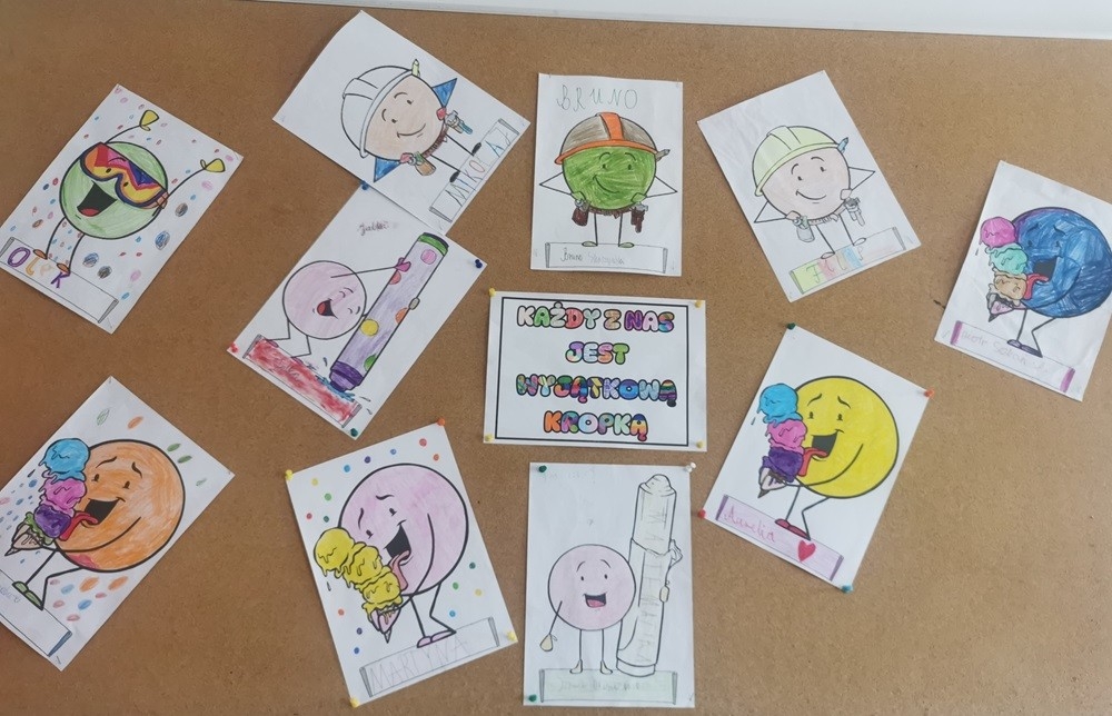 Uczniowie poznali historię Vashti – dziewczynki, która dzięki jednej małej kropce odkryła swój talent i odwagę. W klasach były prowadzone rozmowy o tym, jak ważne jest uwierzenie w siebie i podejmowanie prób, nawet jeśli na początku coś wydaje się trudne. Odbyły się również kreatywne zajęcia plastyczne, podczas których dzieci tworzyły własne „kropkowe” dzieła sztuki – obrazy z kropek. Nie zabrakło również „kropkowych” gier ruchowych i zabaw integracyjnych.