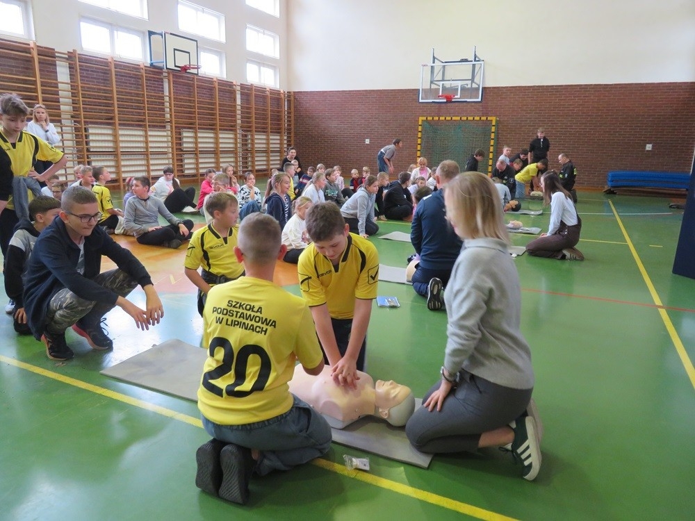 Również w tym roku nasza szkoła przyłączyła się do akcji Fundacji Wielkiej Orkiestry Świątecznej Pomocy w biciu rekordu w jednoczesnym przywracaniu funkcji krążeniowo-oddechowej. Do akcji przyłączyli się wszyscy uczniowie IV-VIII oraz przedszkolaki z Przedszkola Samorządowego w Lipinach, którzy na 5 fantomach ćwiczyli tę ważną umiejętność ratującą życie.