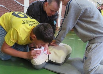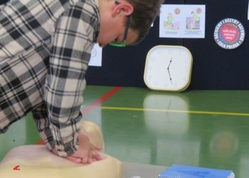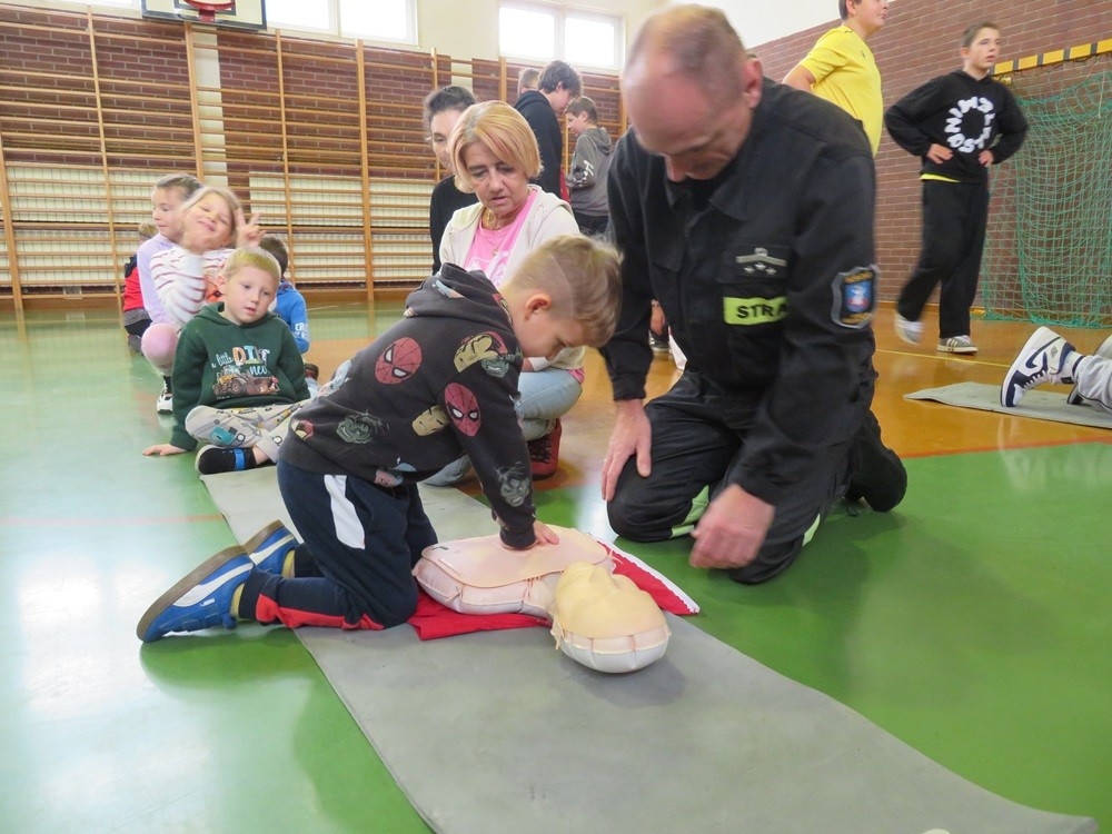 Profesjonalną wiedzą wsparli naszych uczniów druhowie z OSP w Margoninie – pan Bartosz Burzyński i pan Rafał Heimann – którzy korygowali ewentualne błędy. Wszystkich uczestników zaskoczyła to, że RKO wymaga tyle siły, żeby choć przez 30 sekund przywracać akcję serca.